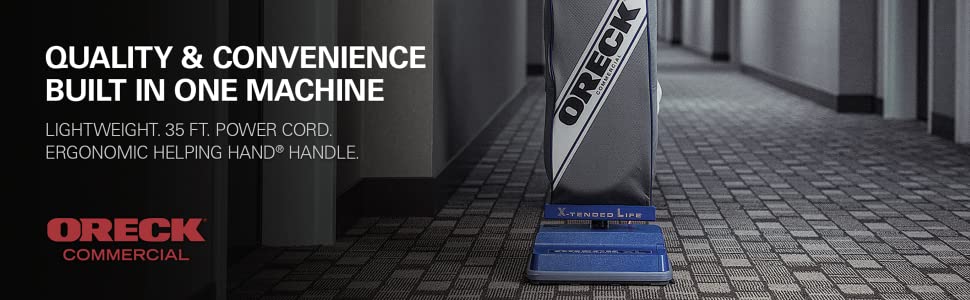 The Oreck XL Commercial Upright Vacuum is a commercial grade vacuum that offers all the power and performance you expect from an Oreck. It gets up close to cabinets and baseboards and fits easily under most furniture, clothes racks, chairs and desks. It can be used on all surfaces including carpet, wood, laminate and tile.